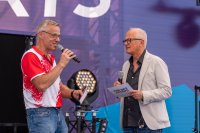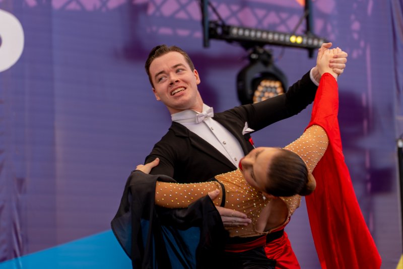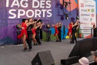 Der ÖTSV wurde dieses Mal auch auf die Hauptbühne des Tag des Sports eingeladen. Am späten Vormittag konnte sich das Standard-Team des TSC Schwarz-Gold Wien präsentieren. Am Nachmittag hatte der UFTSC Perchtoldsdorf die Gelegenheit, sein Können zu zeigen. Die Vorführungen verlangten den Teams auch hier alles ab: eine auch für nur 4 Paare viel zu kleine Tanzfläche und der Teppichboden mussten bewältigt werden. Mit höchster Professionalität und unter großem Applaus der Zuschauer:innen gelangen diese Auftritte ebenso perfekt, wie jener von Tobias Ottner&Melaniia Petrova, die ebenfalls auf der Hauptbühne bejubelt werden konnten.